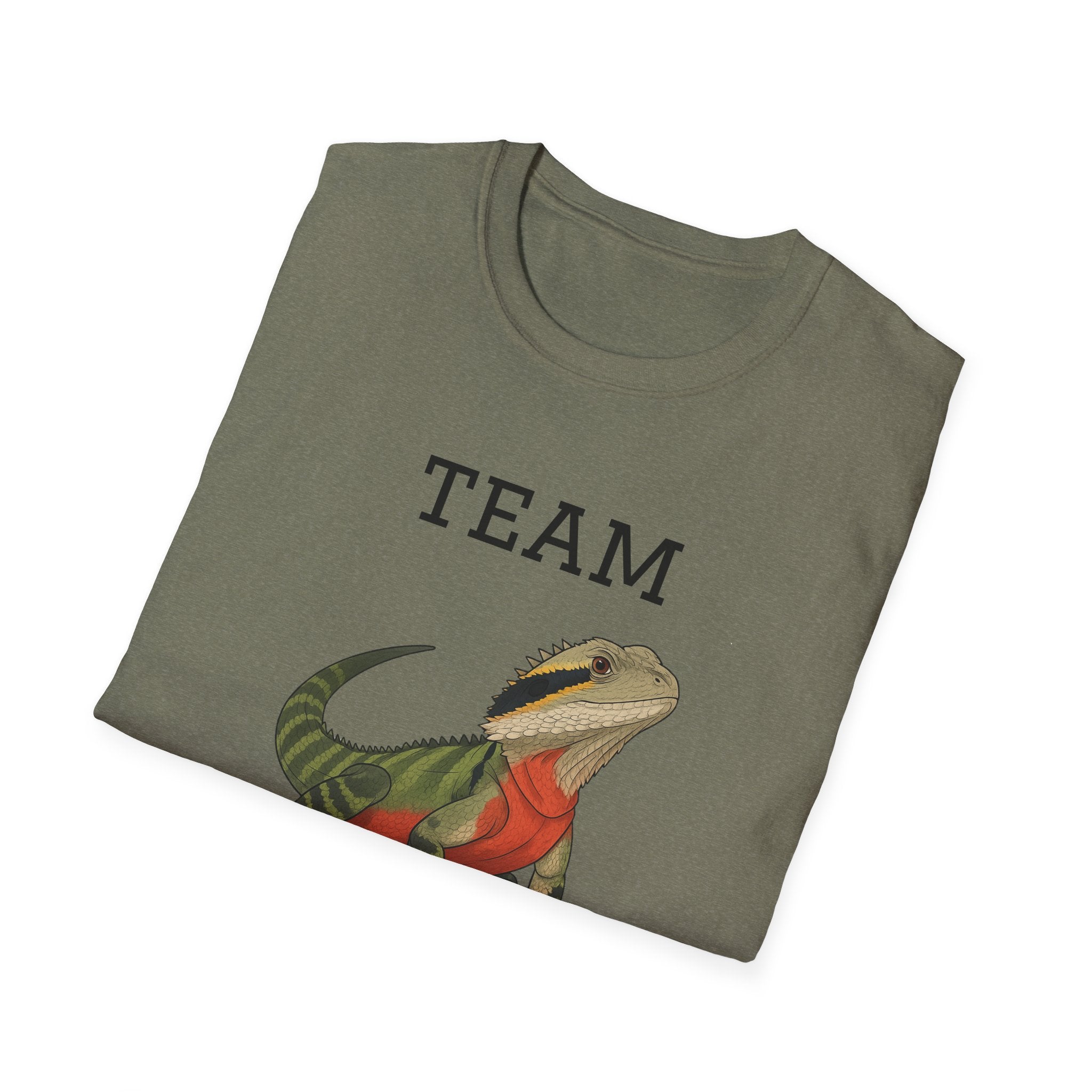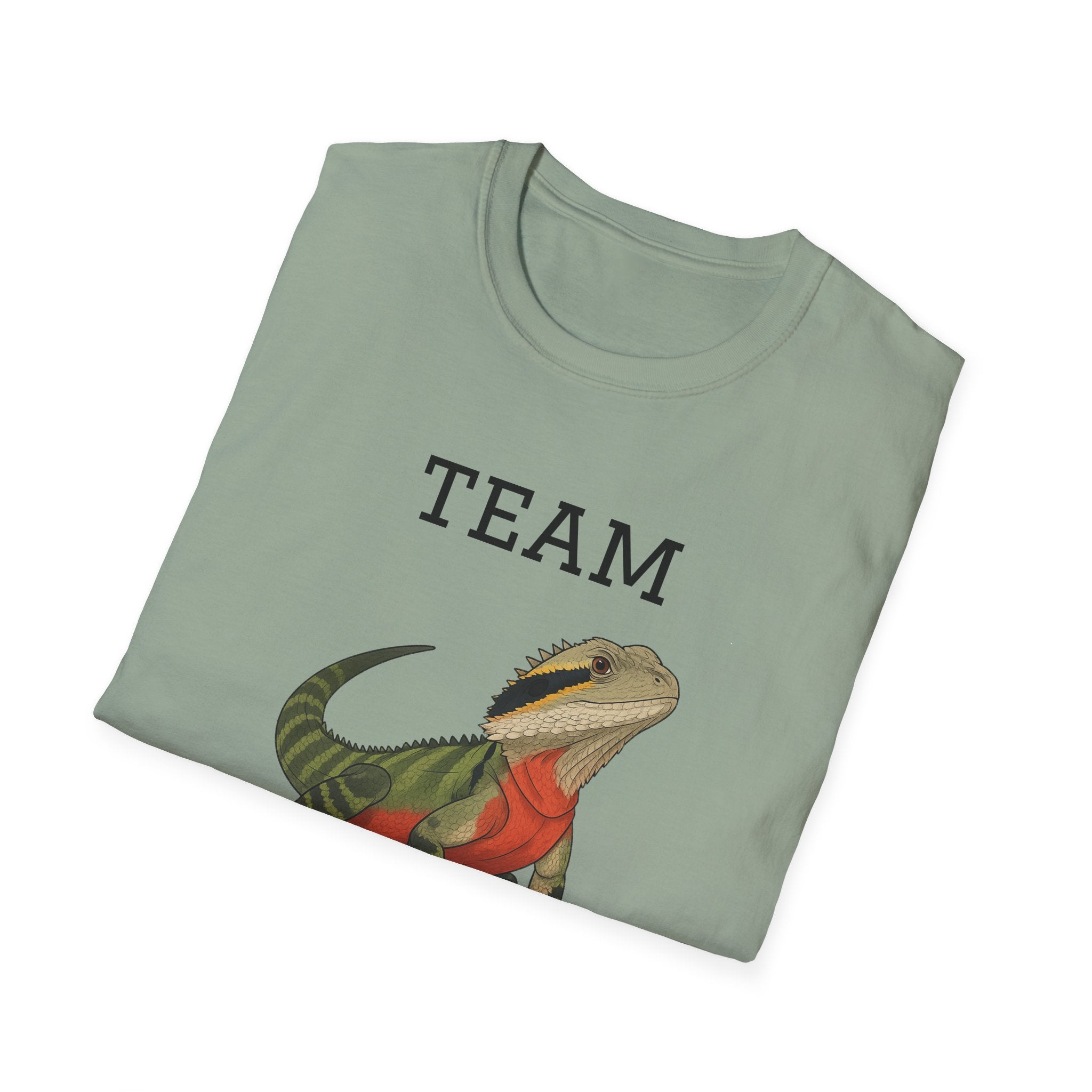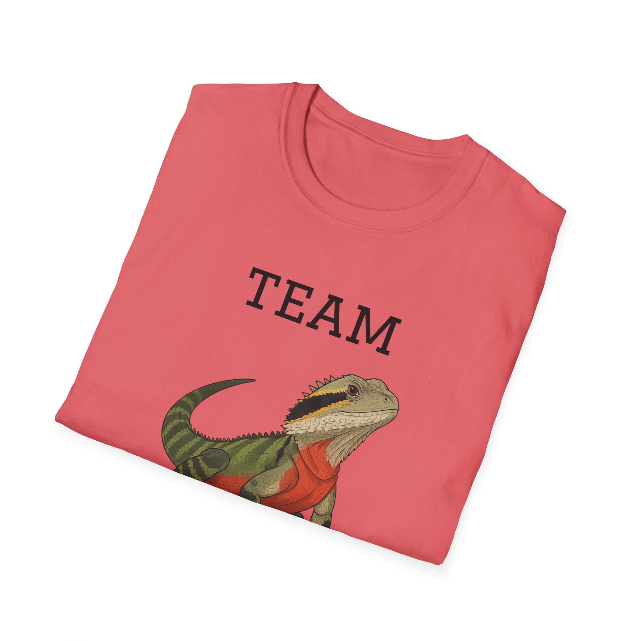 Lightweight and quietly confident — this softstyle tee carries a stunning male Australian Water Dragon and the curved “TEAM INTELLAGAMA” script like a subtle badge of belonging. The breathable ring‑spun cotton feels gentle on the skin and drapes cleanly from the classic crew neckline. Wear it to casual meetups, study sessions, or whenever you want a low‑key nod to curiosity and cleverness. The muted colors and simple layout keep the look versatile: layer it under a jacket or let it stand alone on warm days.